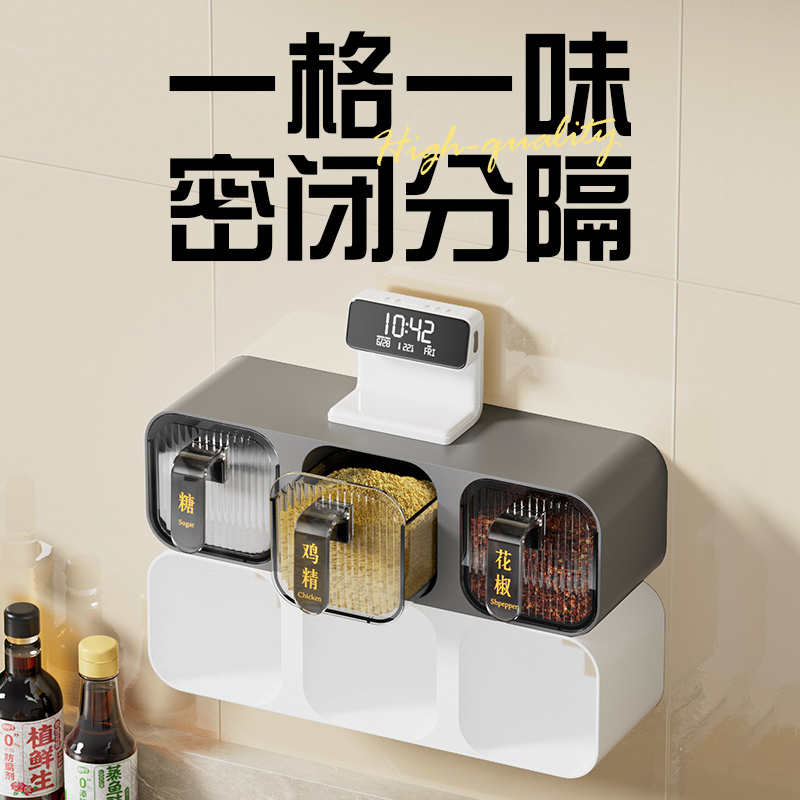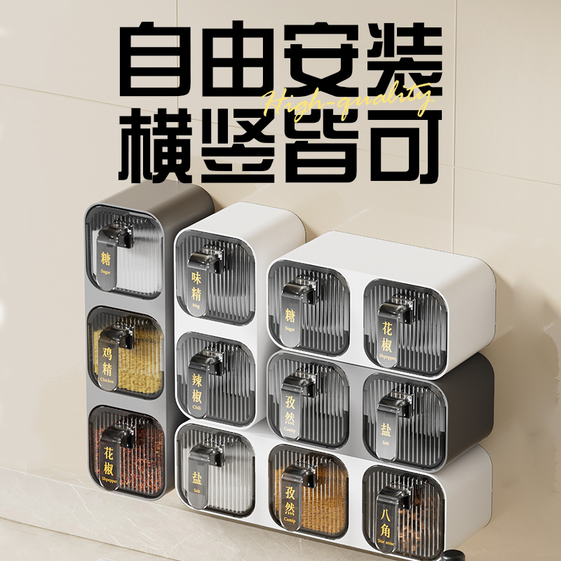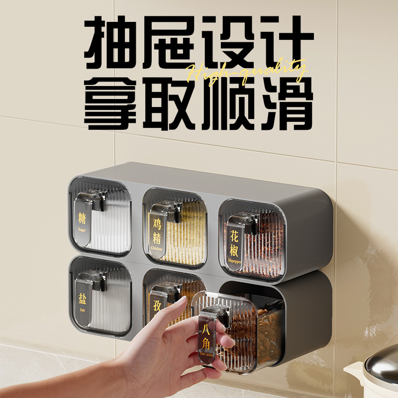 调味盒家用厨房置物架壁挂免打孔调料罐防潮盐味精佐料收纳组合装