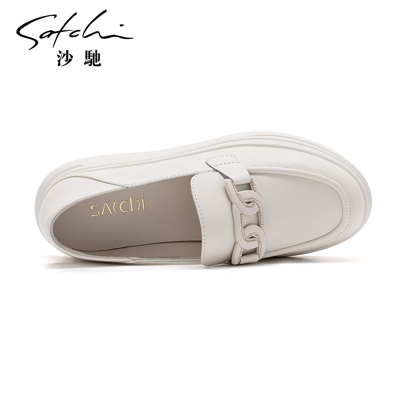 舒软一脚蹬小白鞋 沙驰女鞋 新款 24夏季 可踩两穿超轻增高厚底休闲鞋