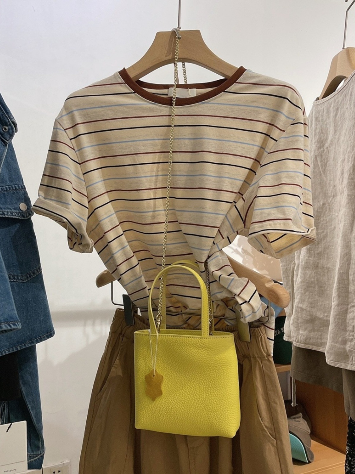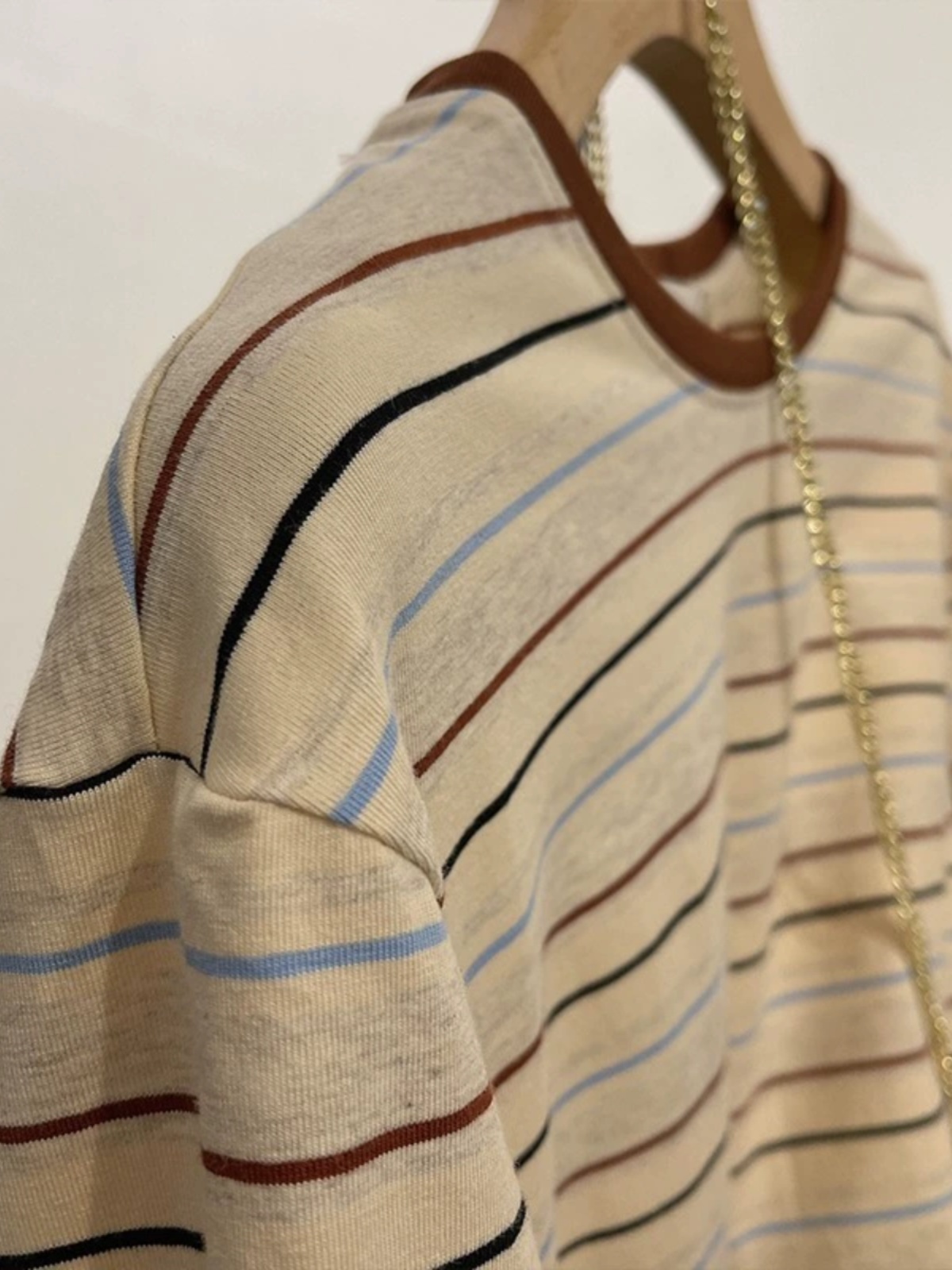 复古撞色减龄T恤潮 休闲风ins百搭短袖 夏季 胖mm显瘦条纹上衣女大码