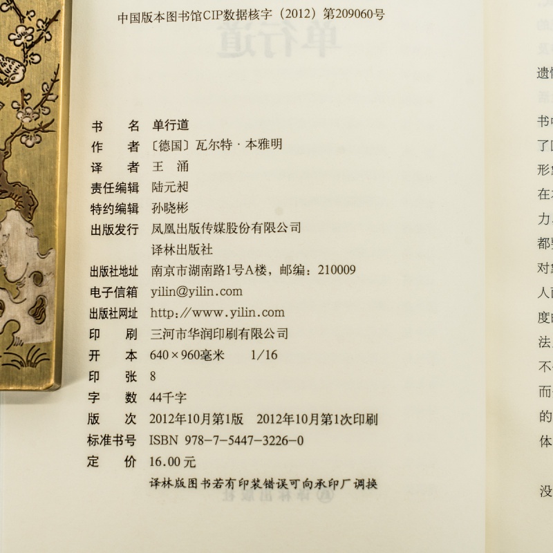 瓦尔特·本雅明 老版 正版 译林版 珍藏 书籍 单行道