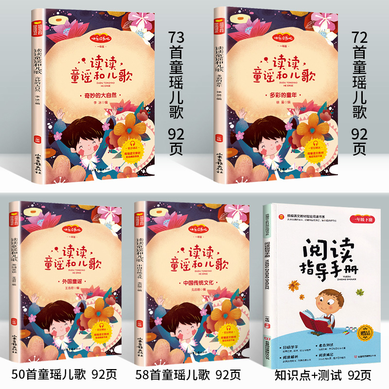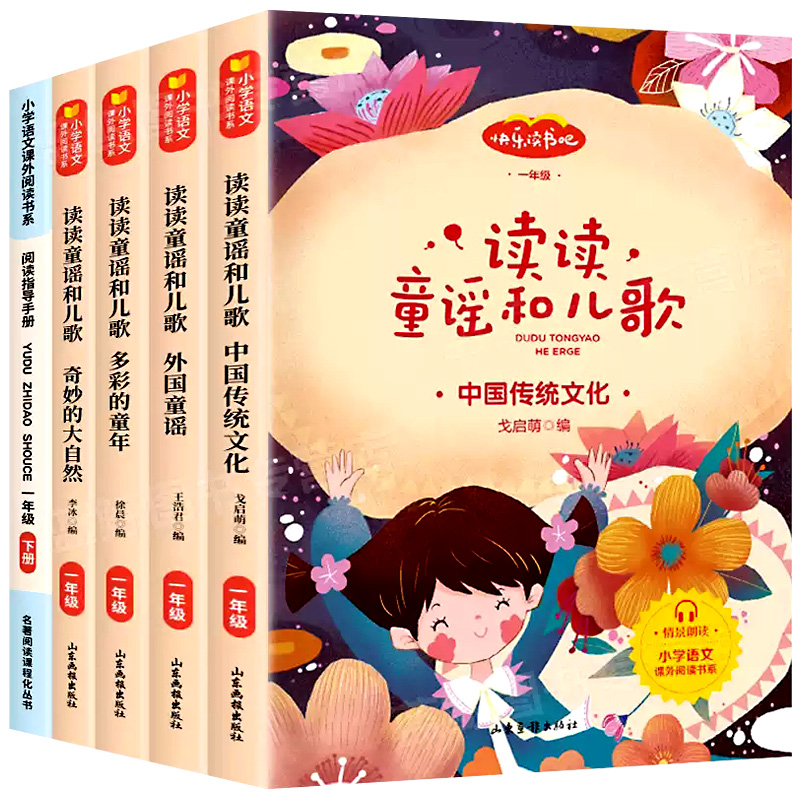 同步语文课本1年级阅读书目小学生课外阅读书籍 人教版 快乐读书吧RJ 全套4册一年级下册必读书老师推荐 读读童谣和儿歌注音版