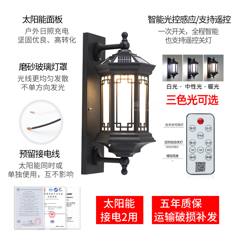 户外防水壁灯阳台室外庭院别墅新中式 走廊花园大门口太阳能外墙灯