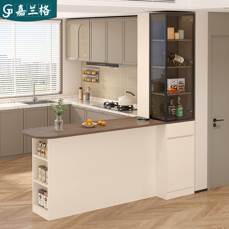实木吧台桌伸缩阳台休闲小吧台家用餐边柜一体樱桃木色橱柜隔断柜