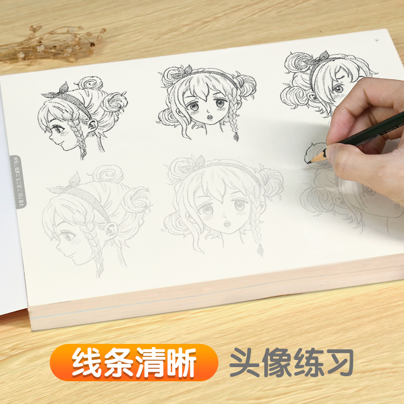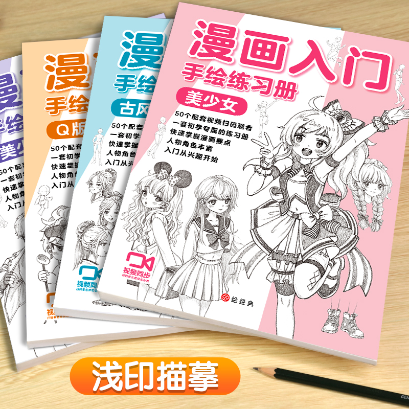 漫画入门手绘练习册 古风卡通儿童线描画画素描描绘画册涂色新手自学临摹教程 动漫人物线稿描摹本美少女男q版