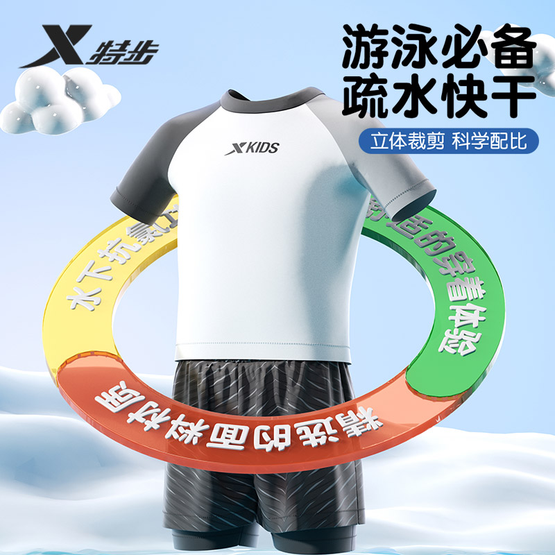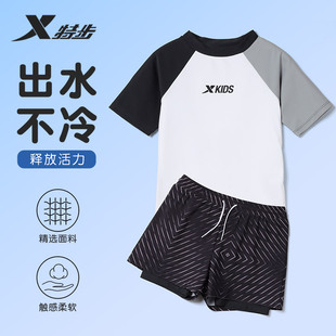 防晒套装 特步儿童泳衣分体中小童2025新款 男孩速干青少年男童短袖