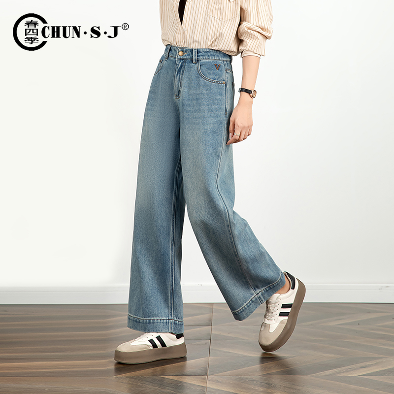 诗凡黎经典 25秋女伊芙丽outlets店 水洗磨毛直筒高腰显瘦牛仔长裤