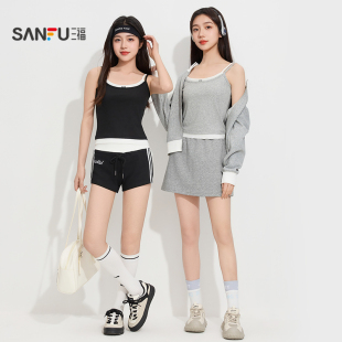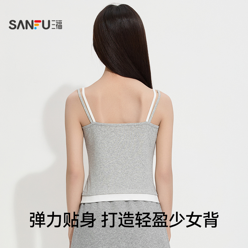 内搭外穿莱赛尔上衣女495695 修身 三福撞色假两件吊带背心 时尚