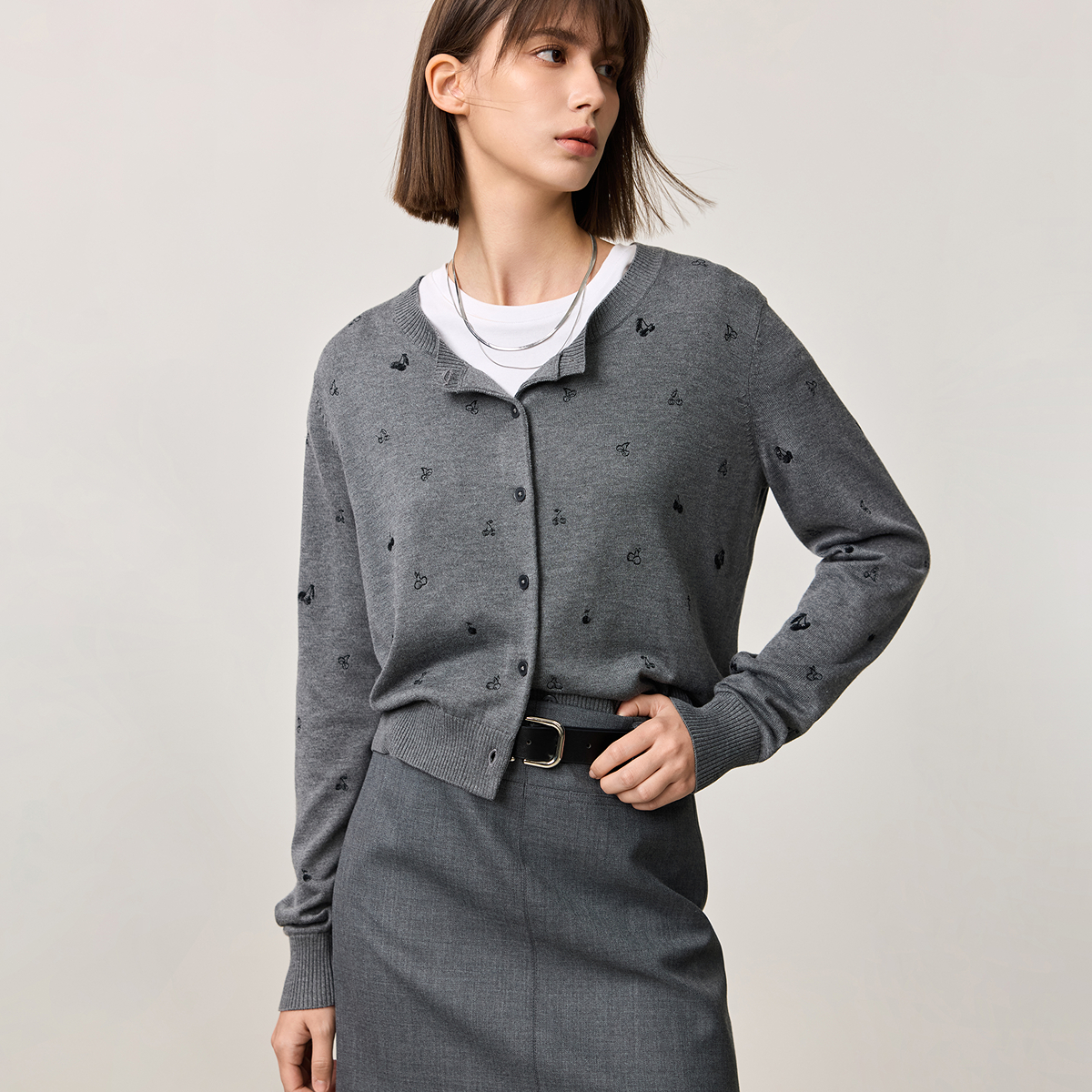 亮片绣花刺绣圆领针织开衫 女装 LILY2025新款 外套女 商场同款