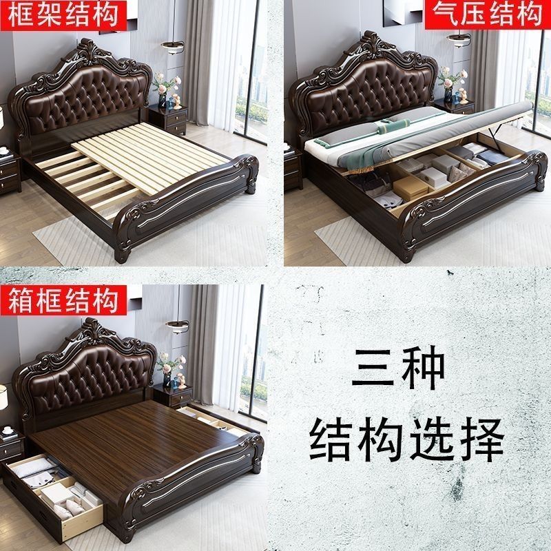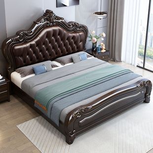 紫金檀木欧式 实木床1.8米主卧双人1.5米家用豪华大床古典床一整套