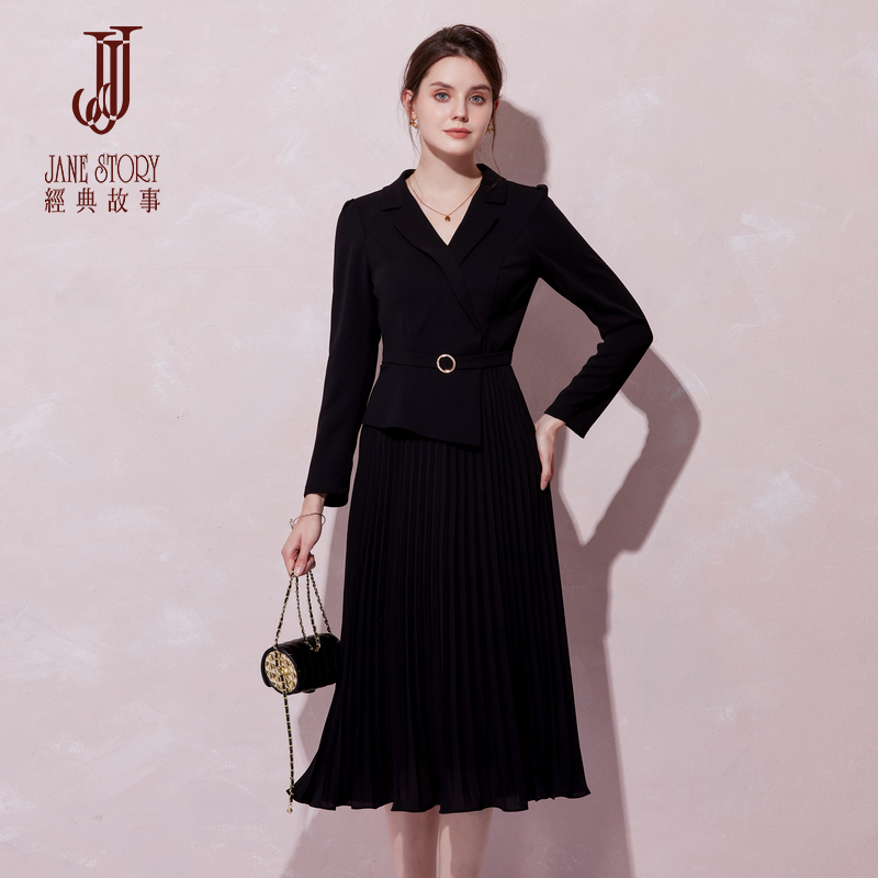连衣裙女 优雅显瘦针织上衣拼接背心裙中长裙套装 ONLY2025秋季 新款