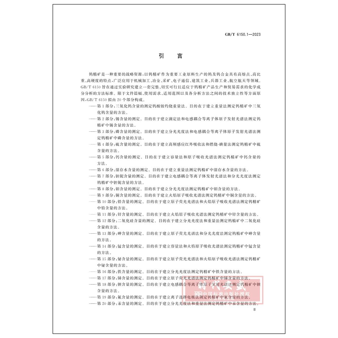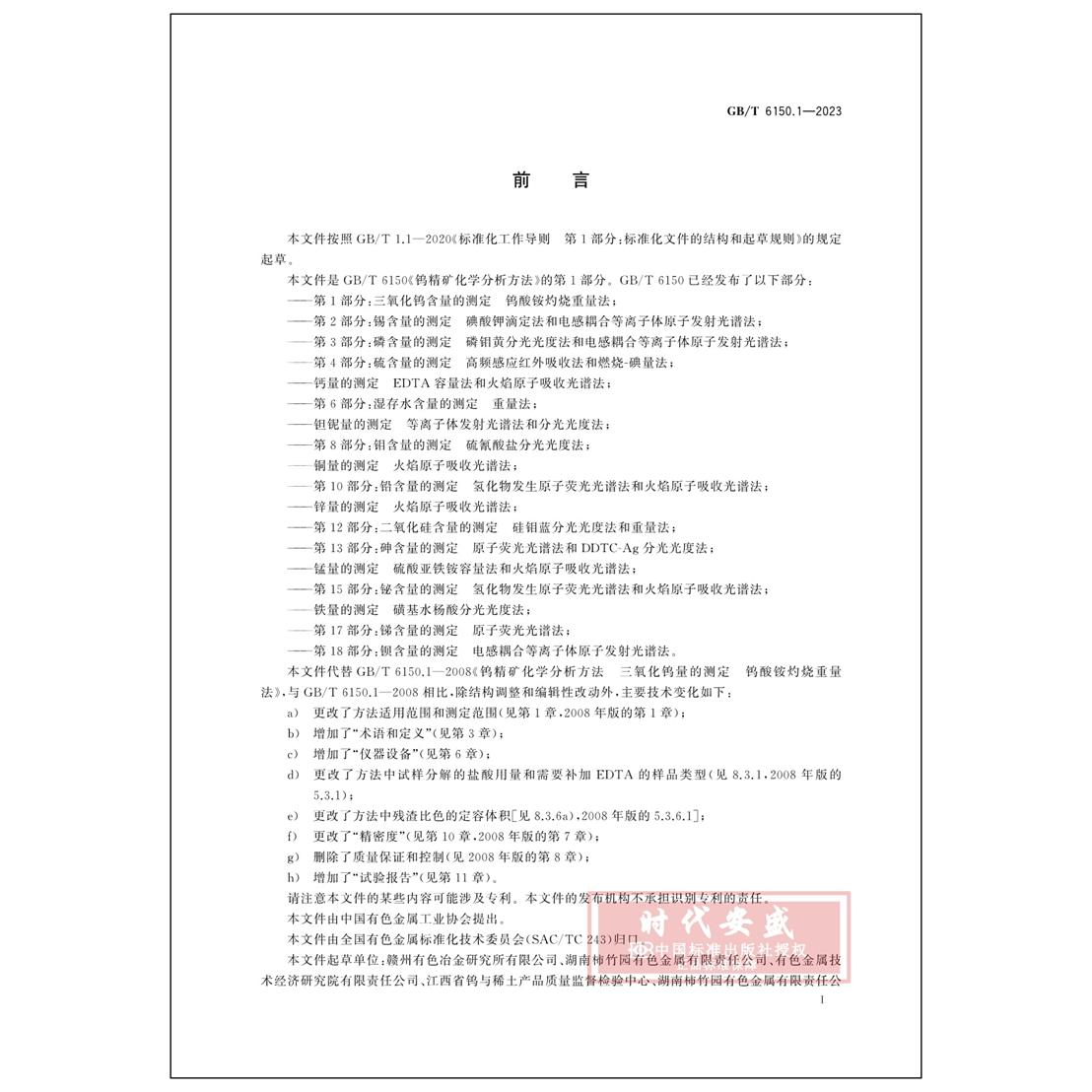 第1部分:三氧化钨含量 2023新标正版 测定钨酸铵灼烧重量法 钨精矿化学分析方法 现货 2023 6150.1