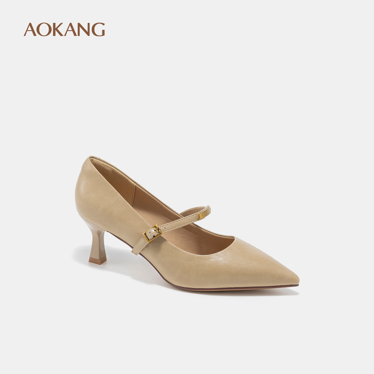 一字扣带高跟鞋 奥康 玛丽珍尖头优雅细跟单鞋 2025秋季 女鞋