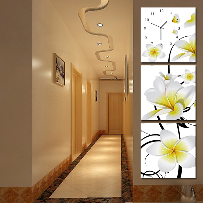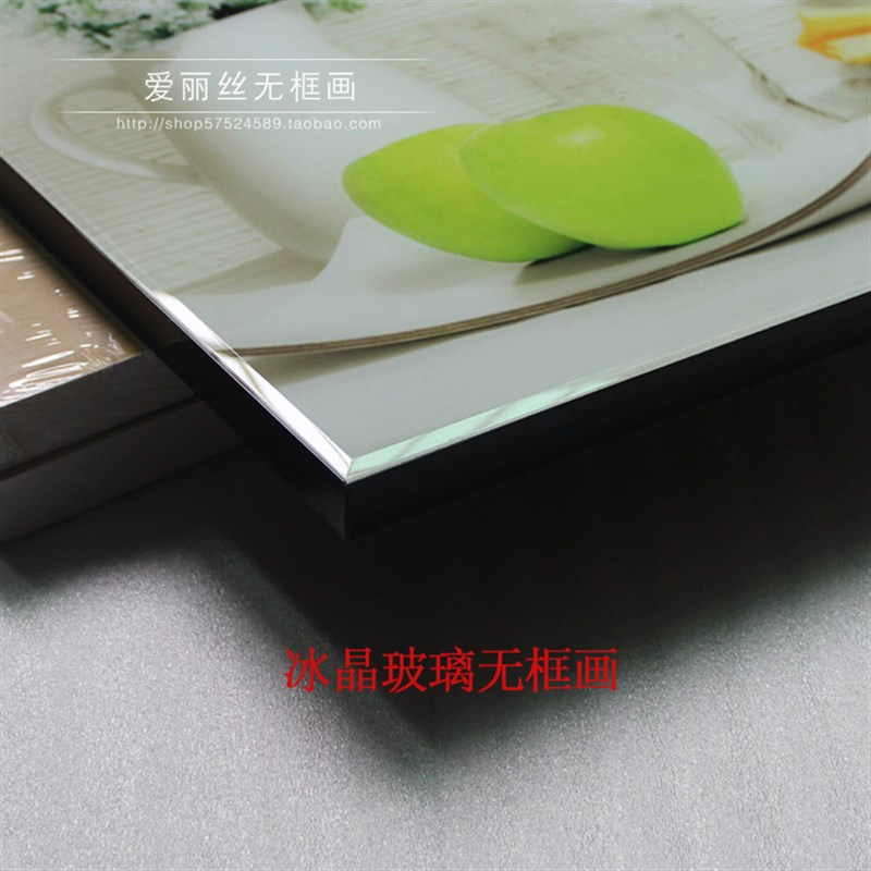 速发冰晶玻璃无框画挂钟静音客厅餐厅时尚 饰画三联竖挂玄关走廊 装