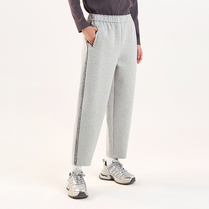 专柜同款 休闲九分裤 Yifini 慢跑裤 女春 易菲侧缝亮片松紧腰时尚