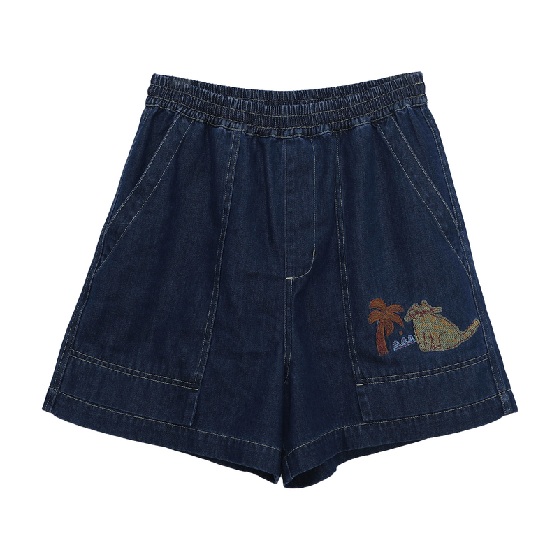 女 .FUN系列丈根腰头绣花设计师牛仔短裤 MOVEUP幻走2025春季 新款