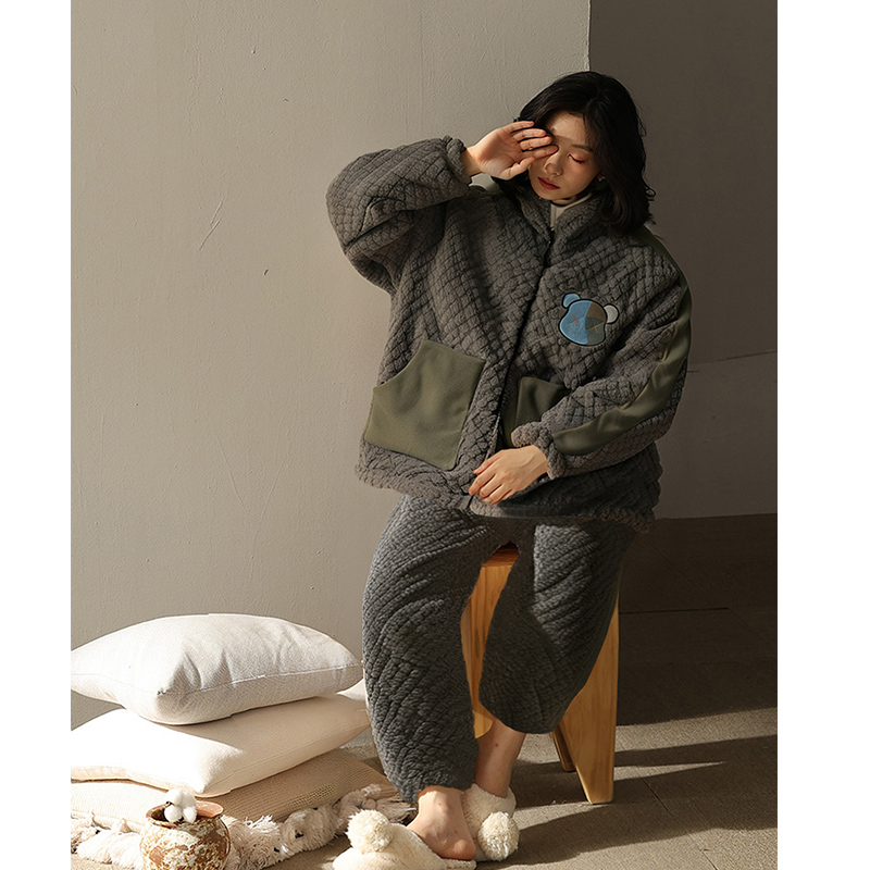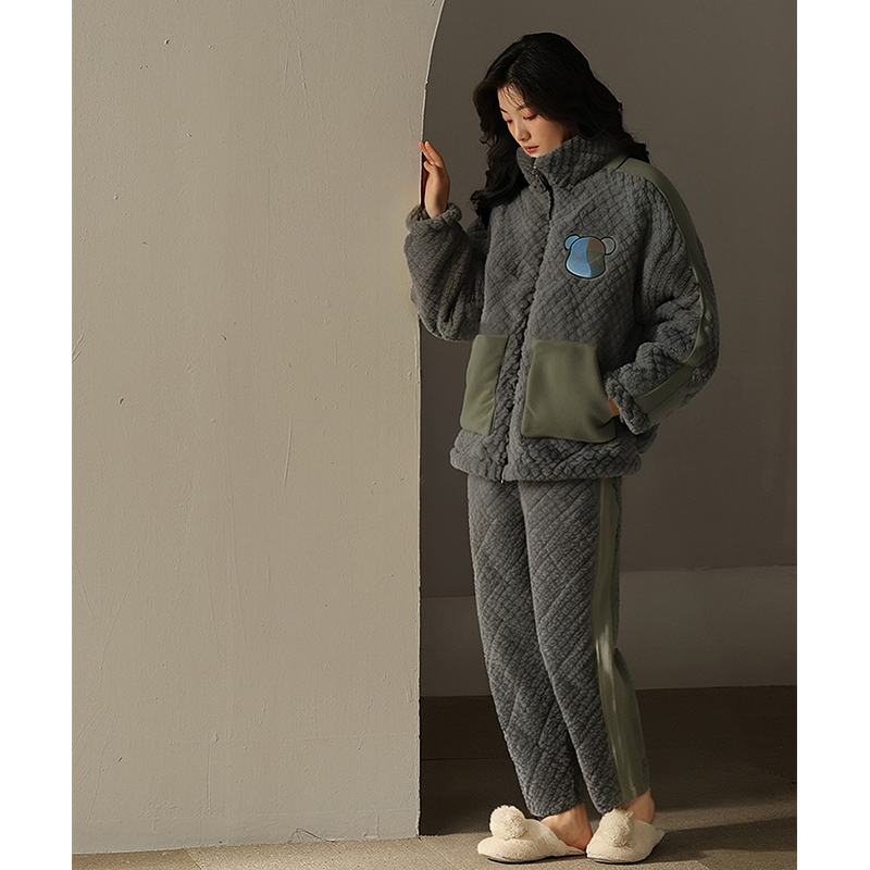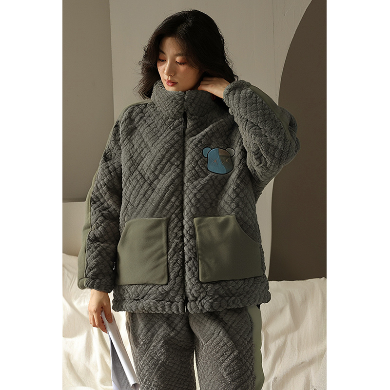 家居服 军绿色外穿大码 三层夹棉超厚睡衣女冬季 立领潮牌赵露思同款