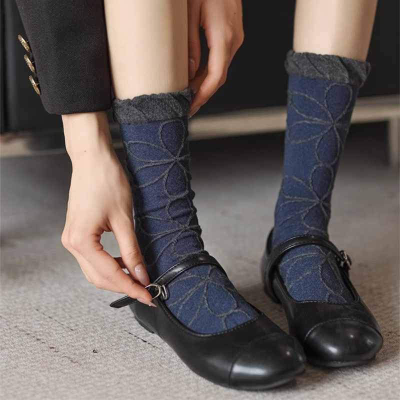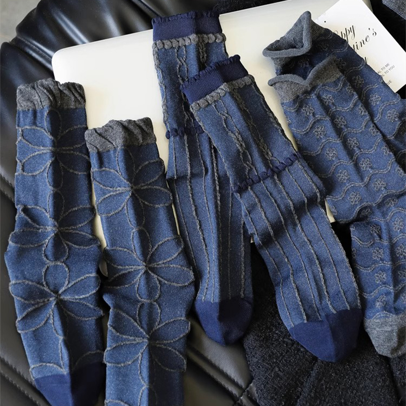 有棵树袜子纯棉女士秋冬7A抗菌透气中筒袜白色长筒袜 复古花纱