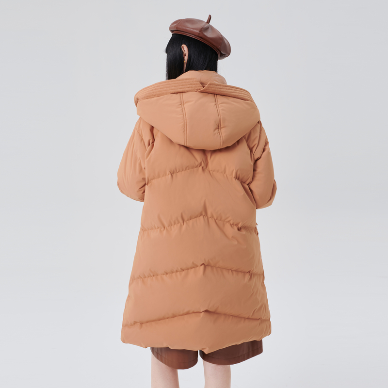 新款 冬季 羽绒服女款 双门襟中长款 保暖鸭绒连帽外套 时尚 艾莱依冬季
