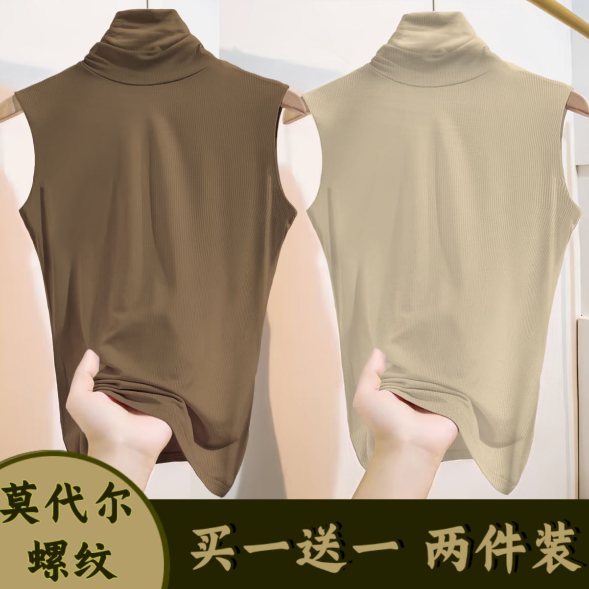 女春秋季 新款 螺纹修身 单 无袖 高领打底衫 内搭女装 背心上衣 两件装