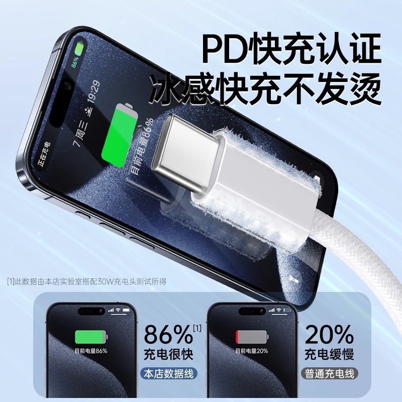 熊遇适用于iPhone16pro充电器PD30W快充数据线15promax14 c快充 13Por12xr苹果接口快充数据线iPad系列双type