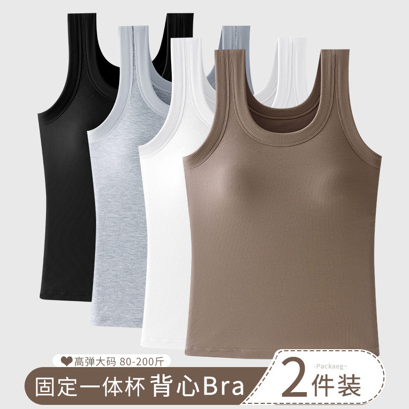 打底内衣加肥加大码 莫代尔一体式 女吊带背心带胸垫免穿文胸吊带衫
