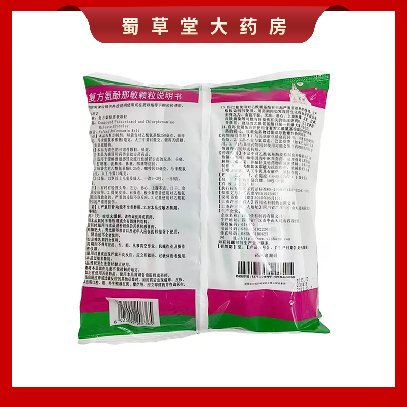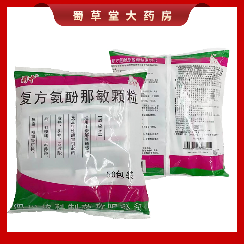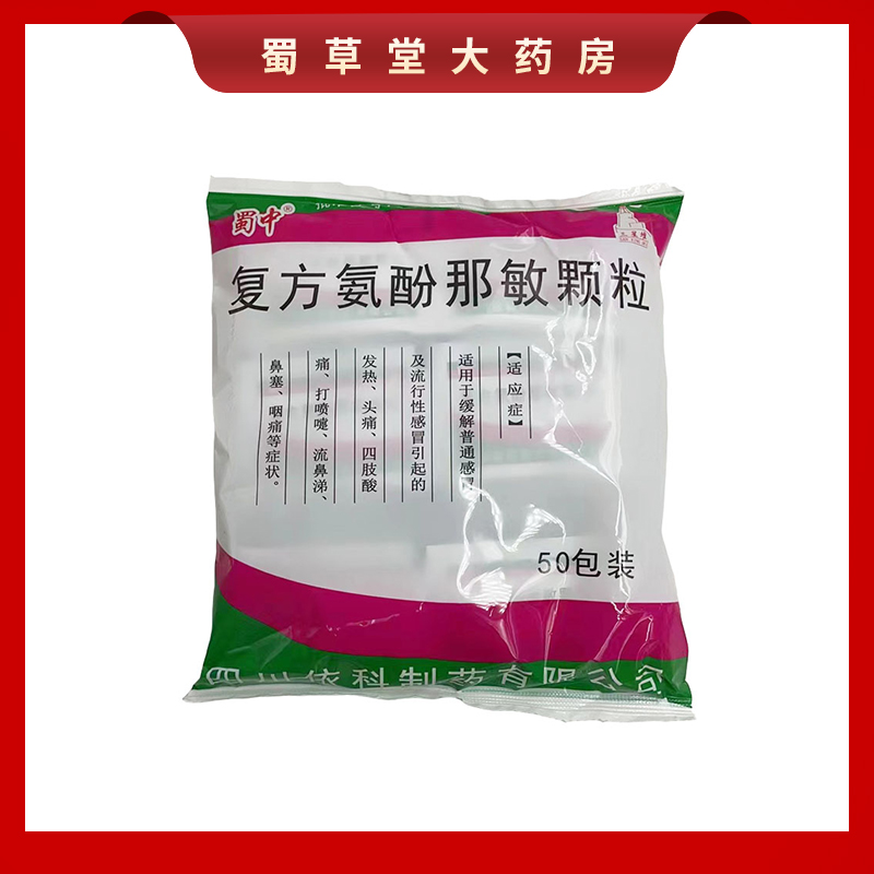 包 50袋 感冒头痛鼻塞发热咽痛流鼻涕 复方氨酚那敏颗粒 蜀中
