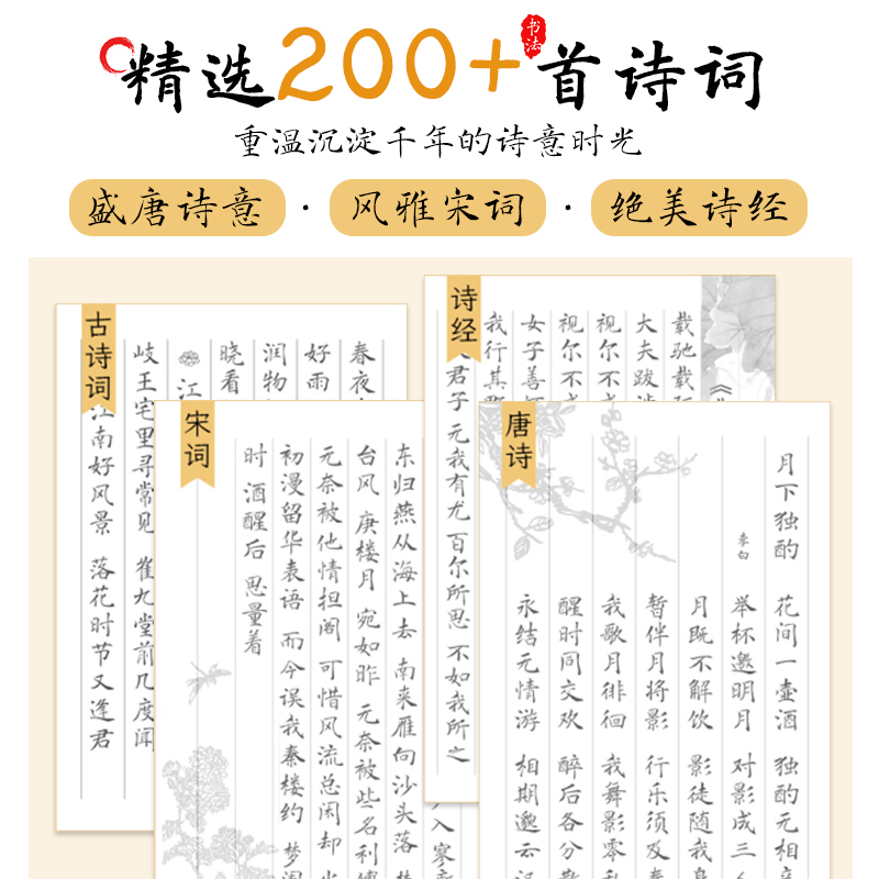 成人儿童软笔控笔训练字帖 唐诗宋词诗经古诗词书法软笔描红本 静心解压初学者入门新手书法 老师推荐 簪花小楷毛笔临摹字帖