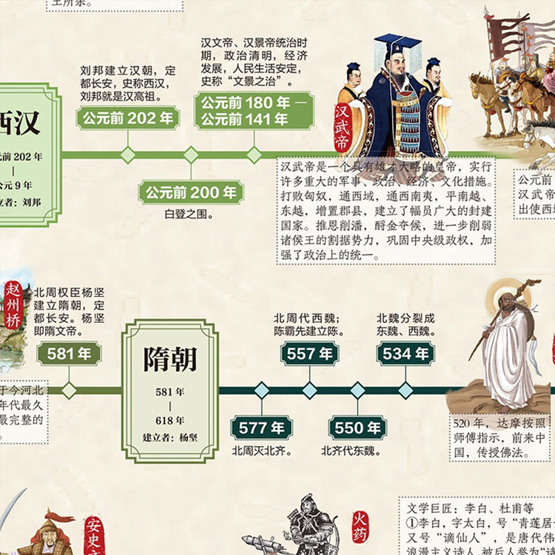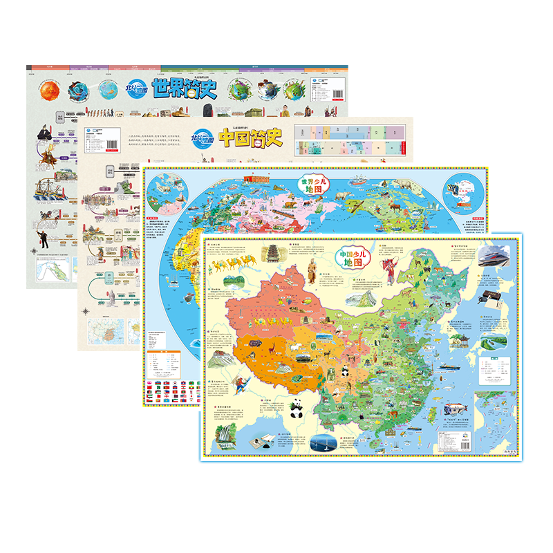 中外历史简史86x60cm儿童地理百科知识启蒙读物高清易懂覆膜防水房间装 少儿地图 饰挂画贴图 超值4张装