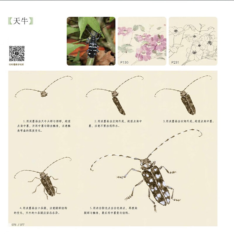 没骨花卉日课教程教学国画临摹画册作品集初学者入门零基础自学白描美术绘画教材书籍 没骨画技法教程 附教学视频 没骨草虫画法