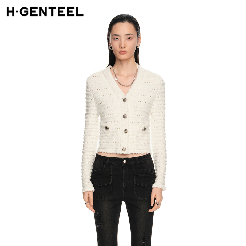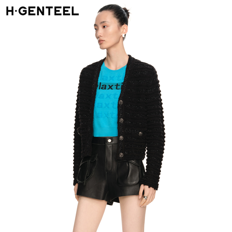 女毛简约开襟织气质华丽舒适针织衫 H·GENTEEL荷高新款 春装