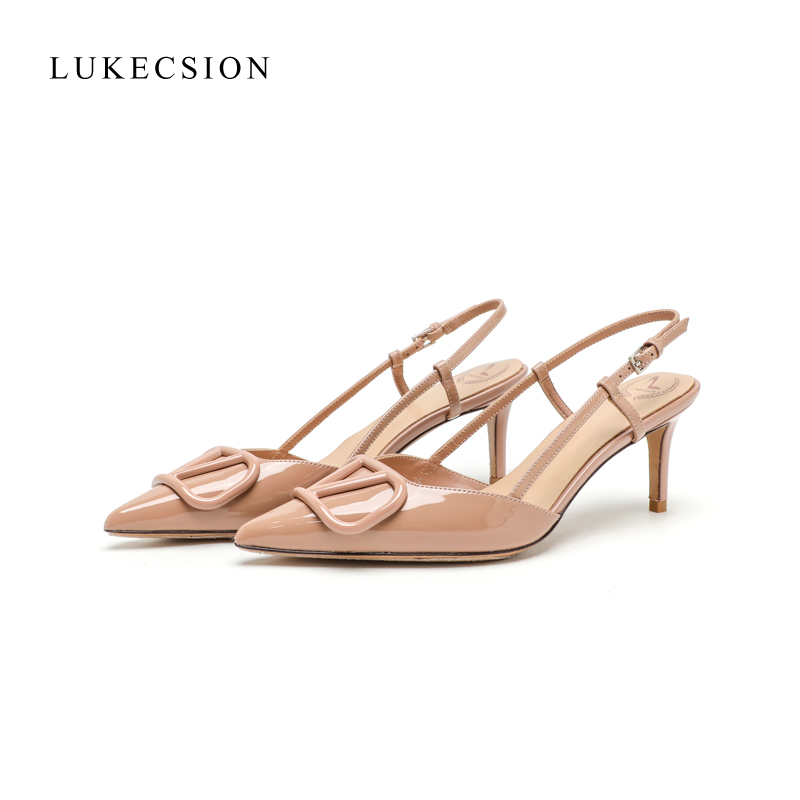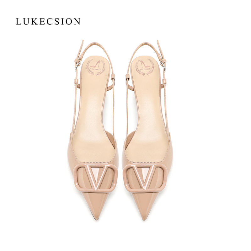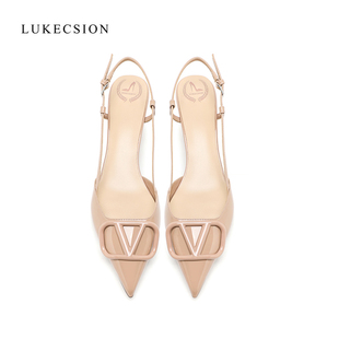 裸色高跟鞋 凉鞋 气质真皮包头细跟法式 新款 女春夏 女V家尖头猫跟鞋