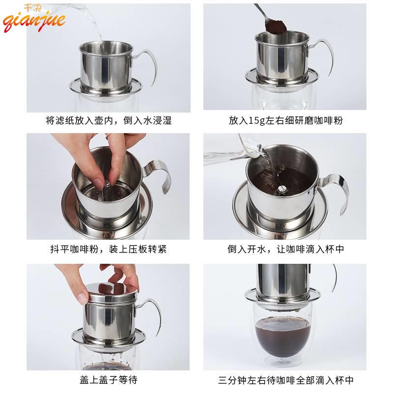 越南滴漏咖啡壶304不锈钢滤杯家用手冲咖啡配套器具冲泡壶咖啡杯