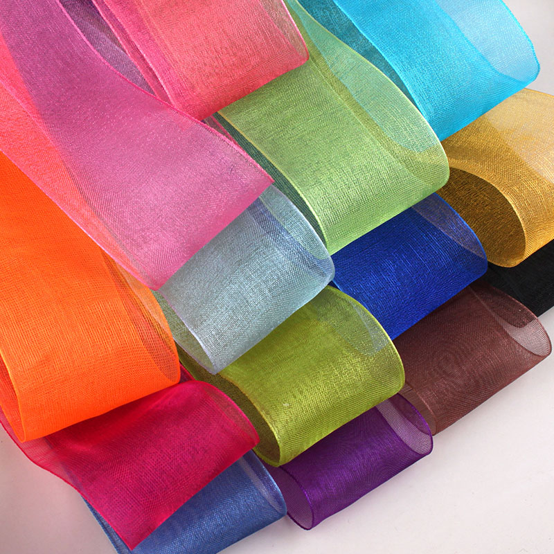 网纱玫瑰花材料包四4厘米雪纱带彩带手工欧根纱透明4cm宽雪纺丝带