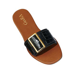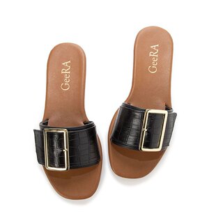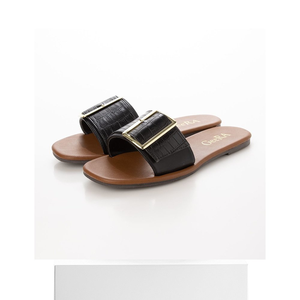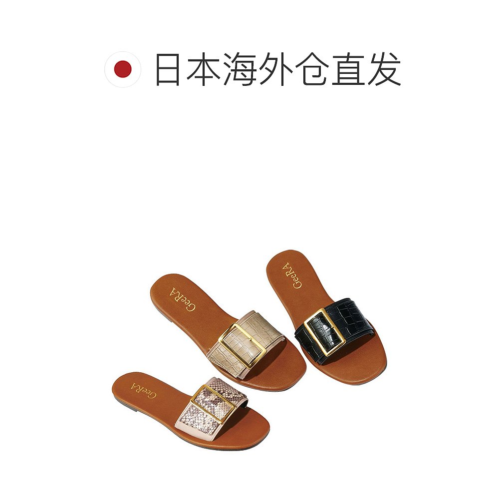 黑色鳄鱼压纹 搭扣设计平底凉鞋 GeeRA 单鞋 日本直邮