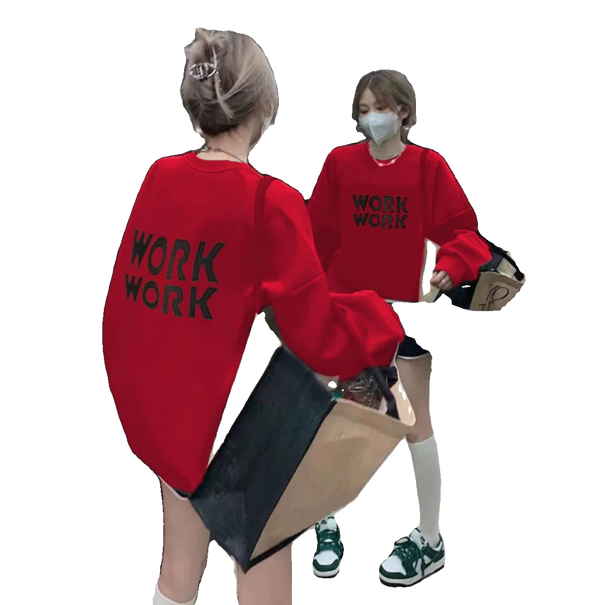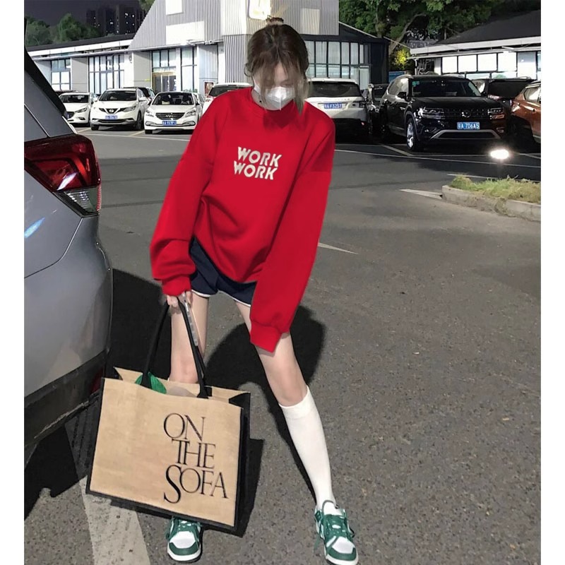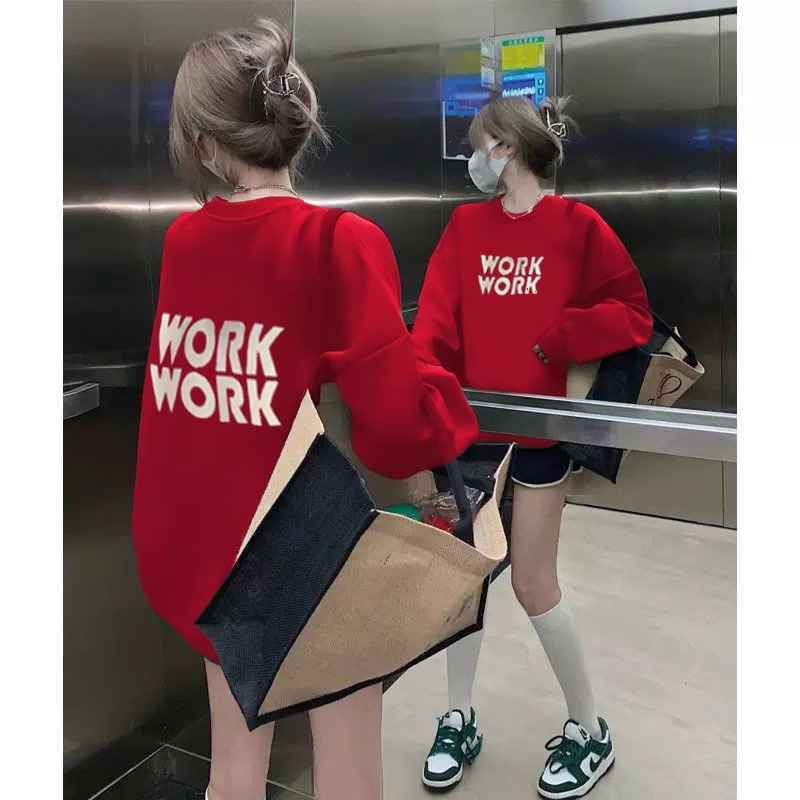 中长款 欧货大版 加绒加厚圆领印花上衣 爆款 红色卫衣女秋冬2025新款
