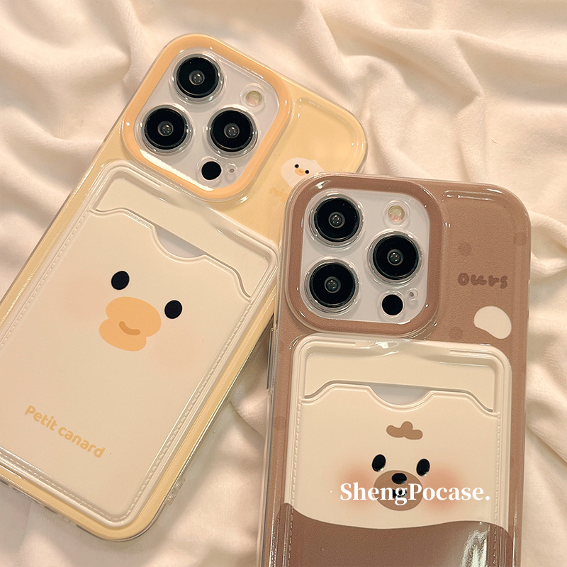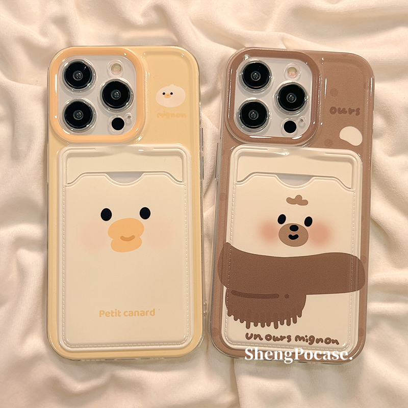 卡通可爱小熊鸭子卡套适用苹果14promax手机壳创意iphone16情侣新款 12小众极简11女14pro硅胶15pro防摔13全包