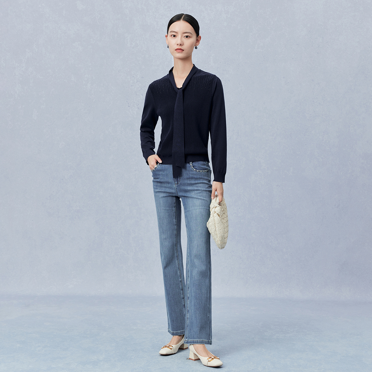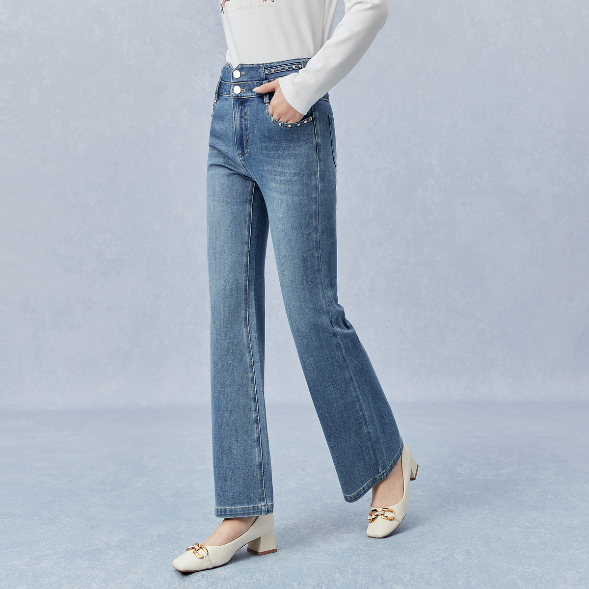 新款 夏季 朗姿微喇高腰牛仔裤 气质含醋酸通勤裤 赵露思许妍同款