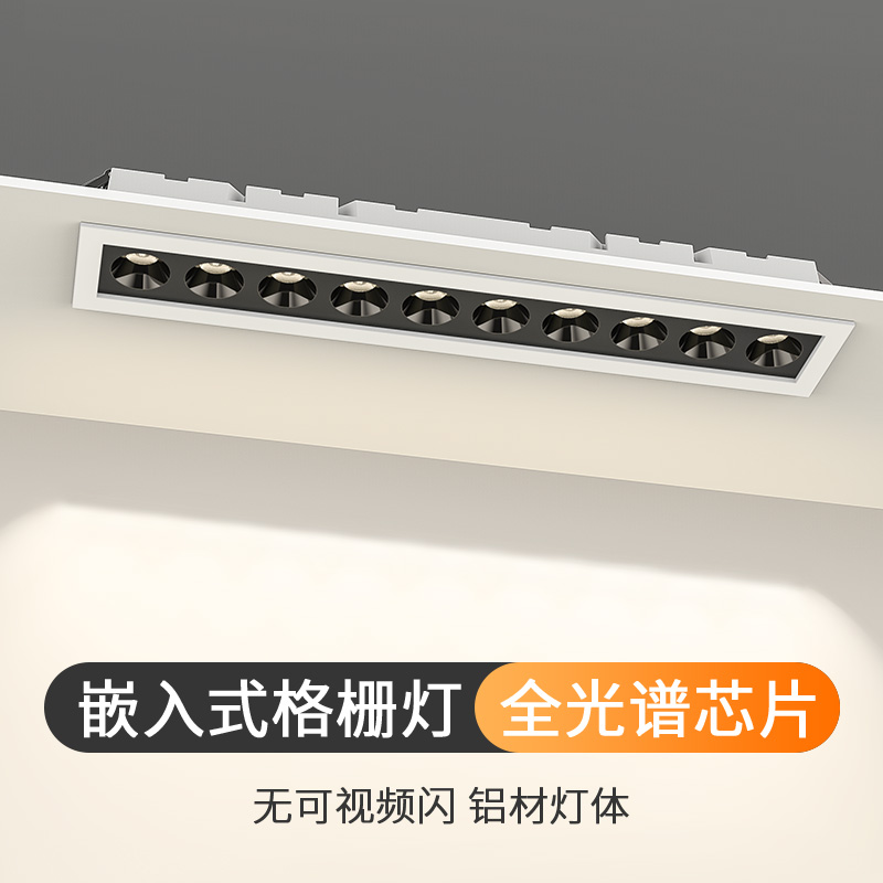 格栅灯嵌入式 无边框10珠客厅防眩线性长方形长条无主灯射灯 内嵌式