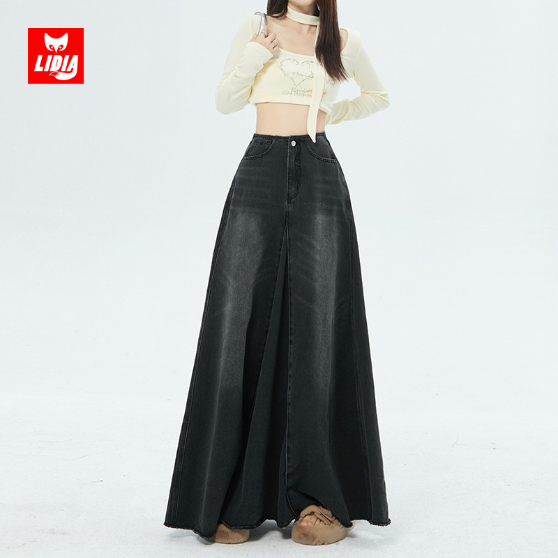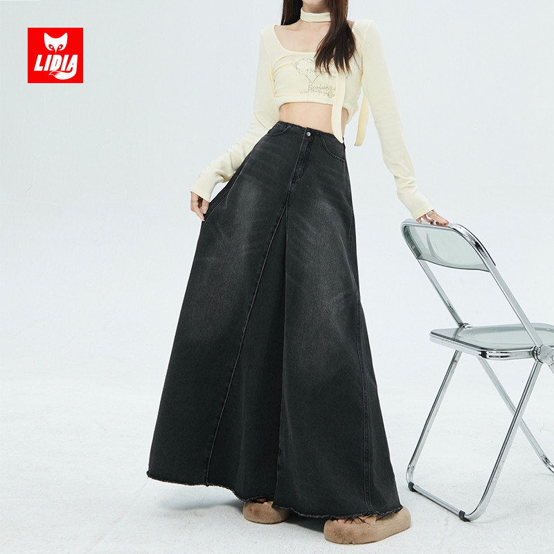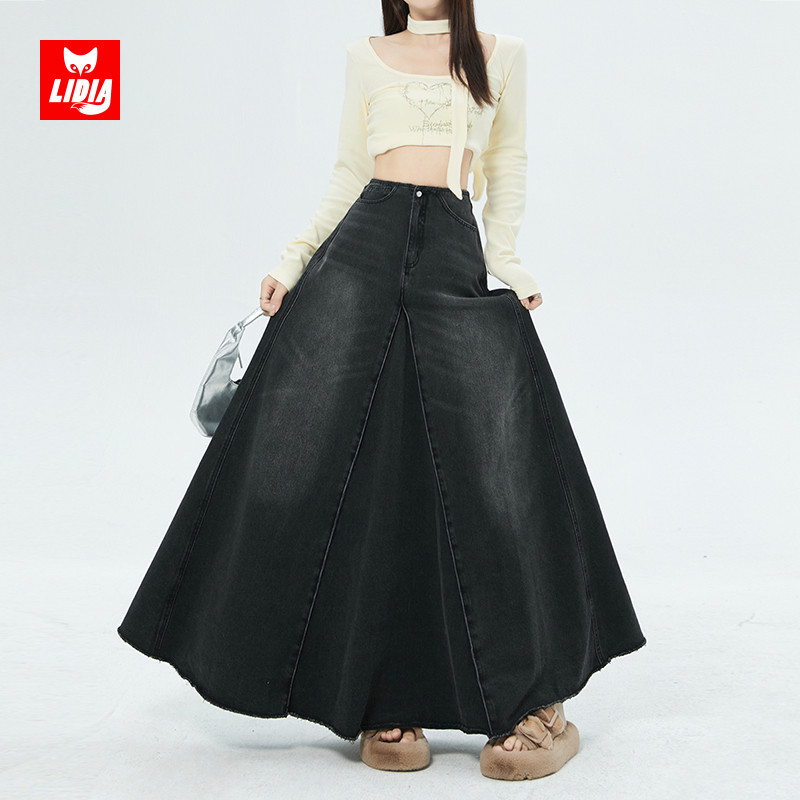 复古黑色半身裙牛仔裙女秋冬新款 显瘦a字半身长裙子伞裙 高腰修身