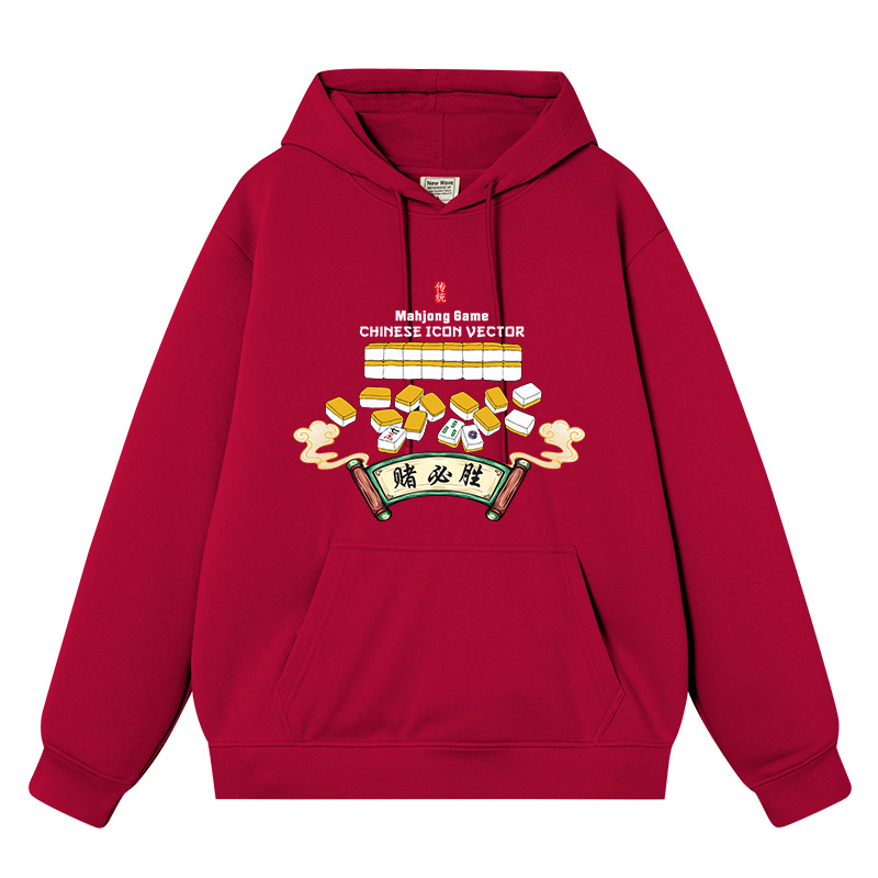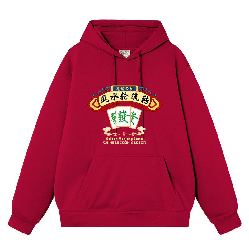 国潮打麻将战袍卫衣男女吃碰杠听胡赢钱发财情侣装 连帽外套 秋冬季