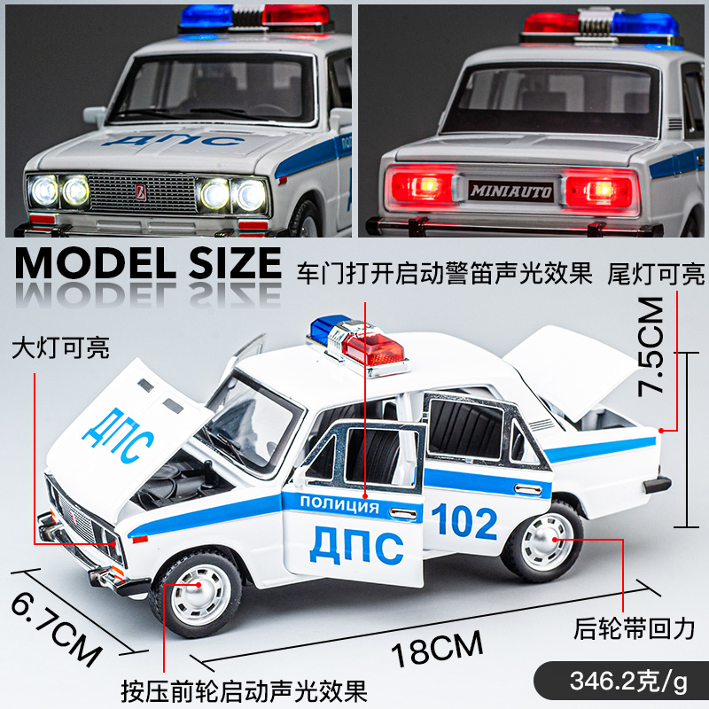 拉达警车合金玩具车复古经典 仿真模型汽车儿童男孩礼物警车玩具车