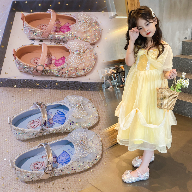新款 儿童鞋 子小皮鞋 女童鞋 春秋单鞋 2023春季 宝宝闪亮水晶鞋 公主鞋