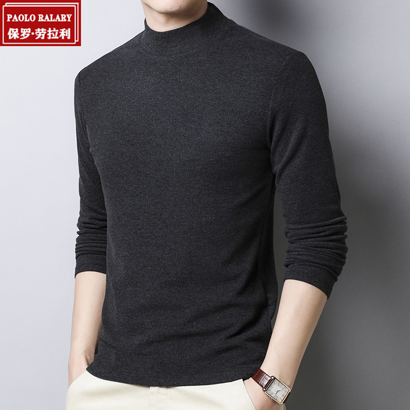长袖 男士 T恤中领保暖内搭男上衣 半高领双面绒打底衫 真德绒秋冬装