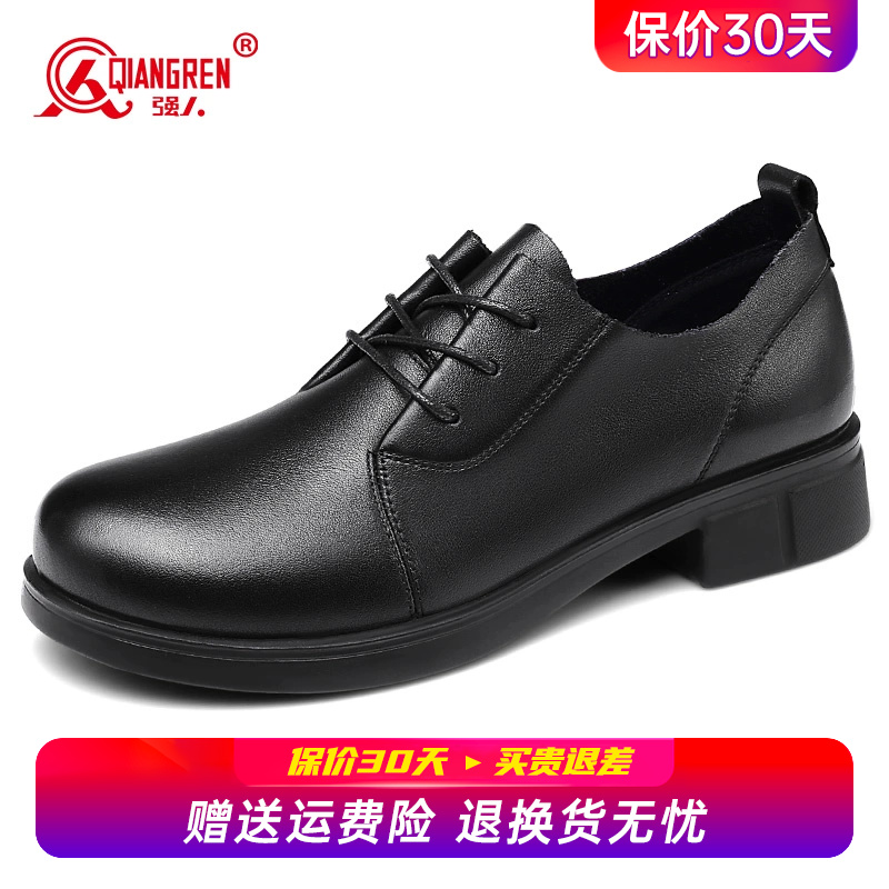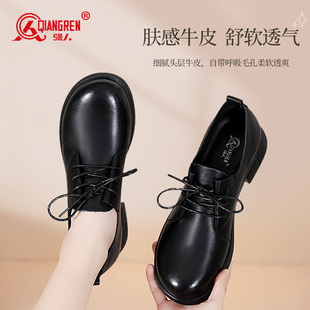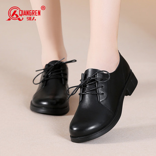 系带软底小皮鞋 强人3515女鞋 工作鞋 女英伦风黑色通勤单鞋 女 乐福鞋