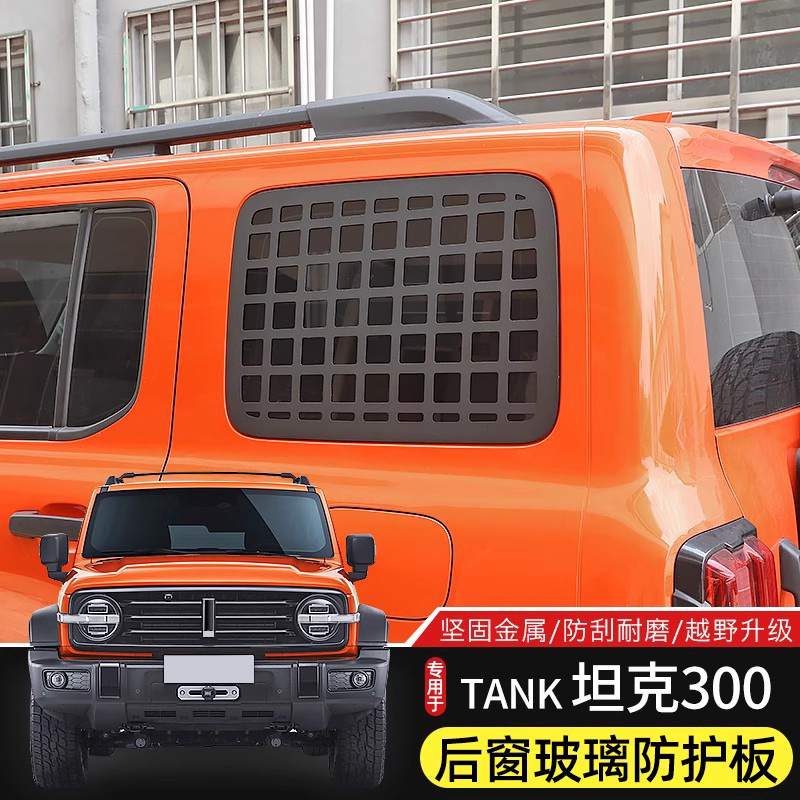 坦克300后窗车贴适用于坦克300改装 饰 侧窗玻璃防护板金属机甲网装
