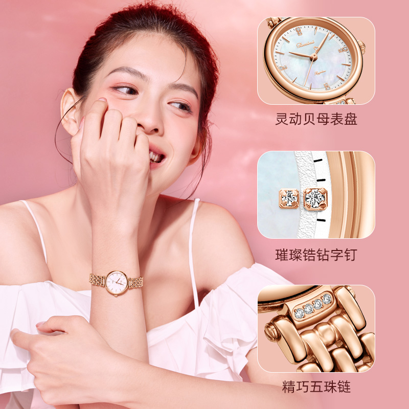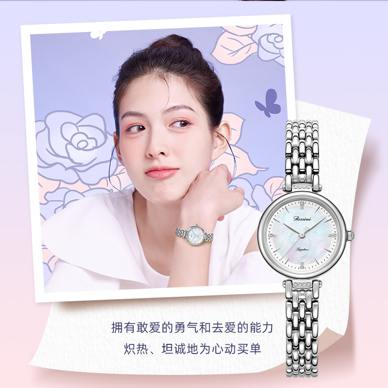 罗西尼官方手表女表轻奢小众气质女款 石英表项链礼盒5230160