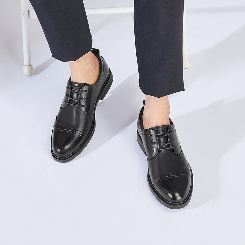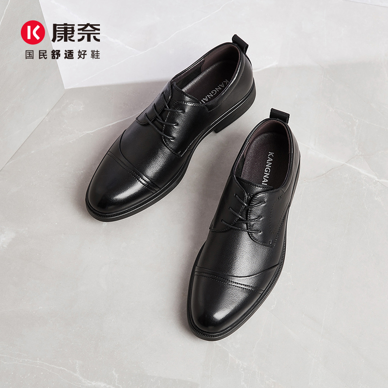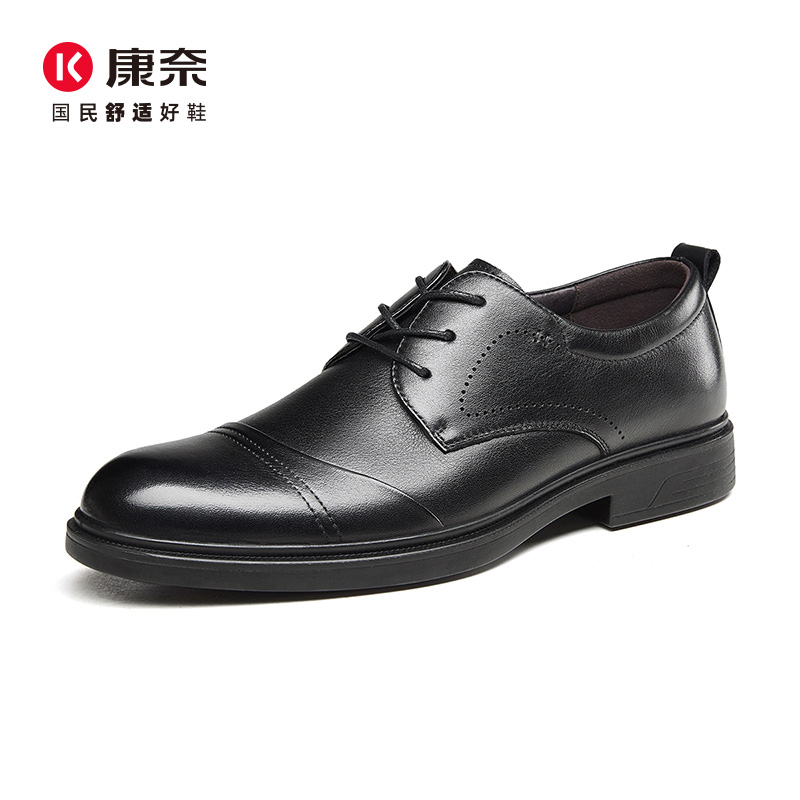 皮鞋 真皮透气男士 三接头皮鞋 康奈男鞋 英伦德比鞋 商务正装 西装 秋季