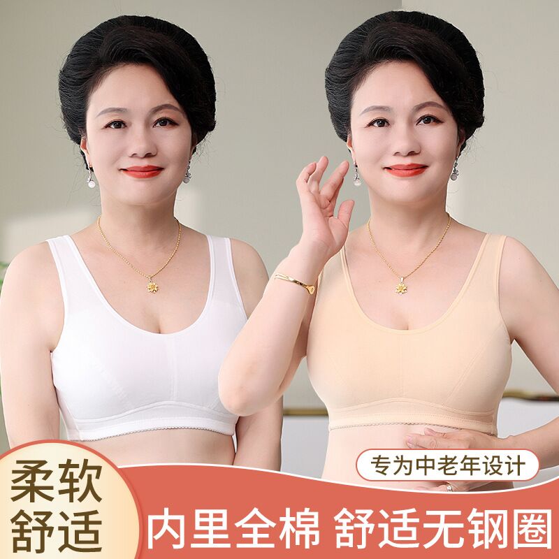 显小 薄款 纯棉妈妈内衣女中老年妇女士无钢圈背心式 文胸罩透气夏季