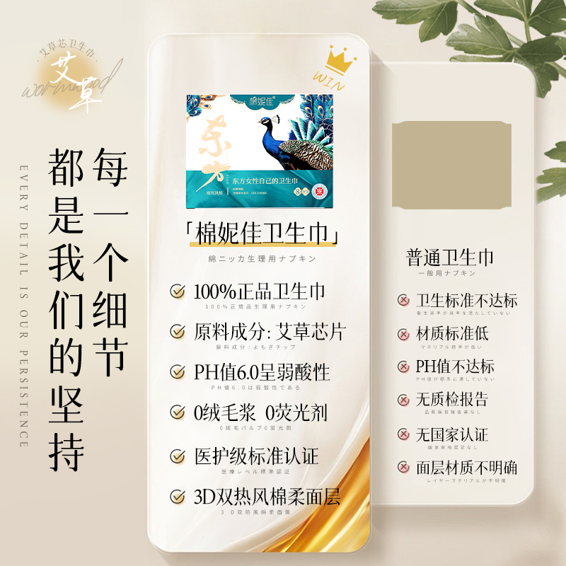 小妮医护级超薄卫生巾透气日夜用姨妈巾283量大日用标准护翼国货