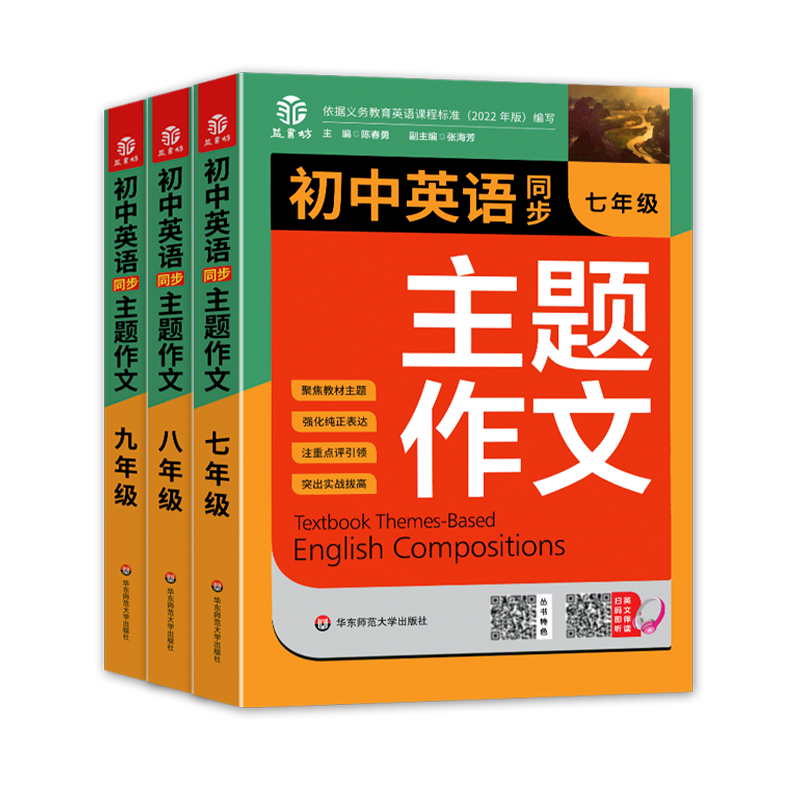 益书坊初中英语同步主题作文七八九年级英语人教版 课堂随堂写作练习满分范文例题点评好词好句 同步作文音频朗读初一初二初三单元